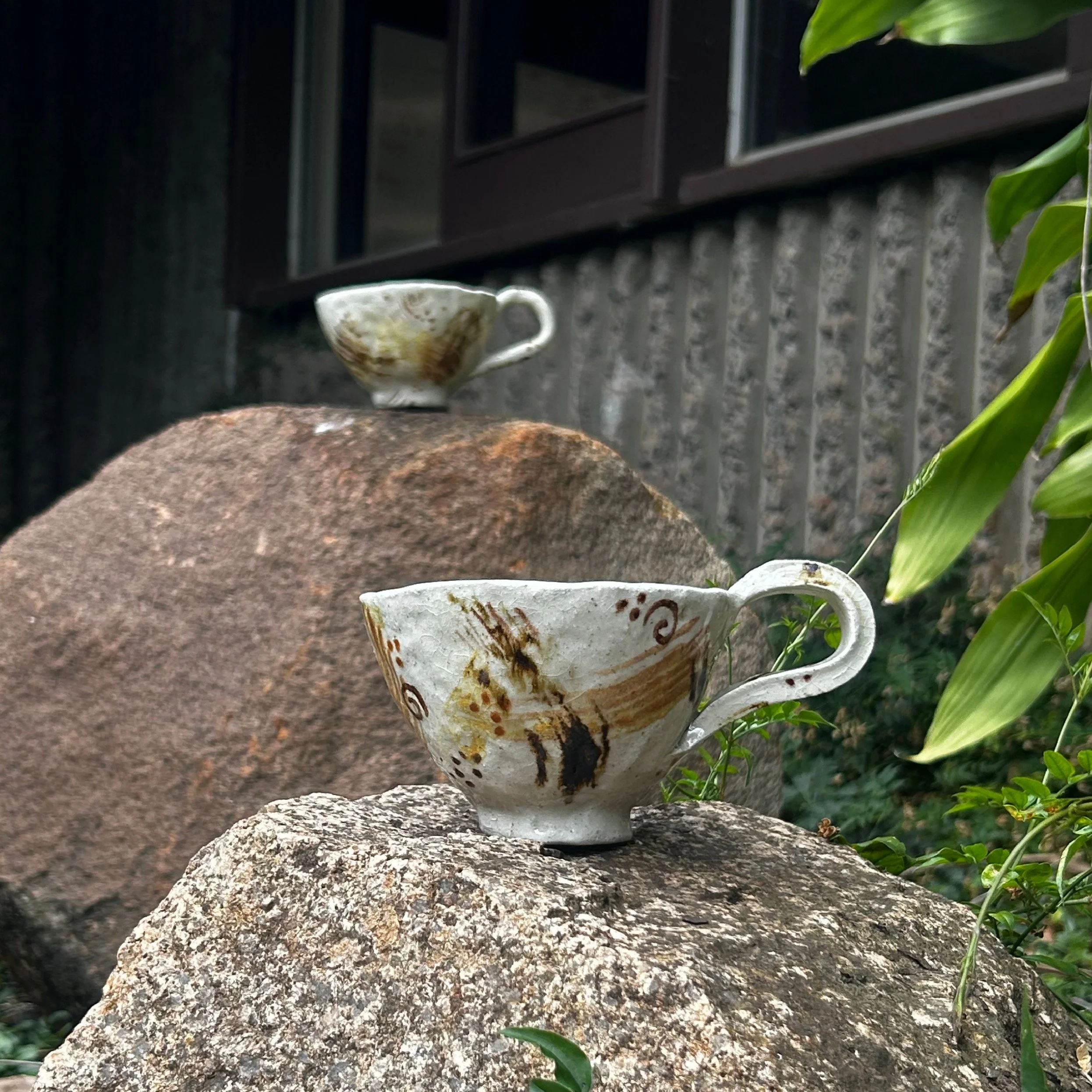These hand built cups were made using a pinch pot technique, one of the oldest methods of pottery, connecting us to the thousands of artisans which have lived before us.