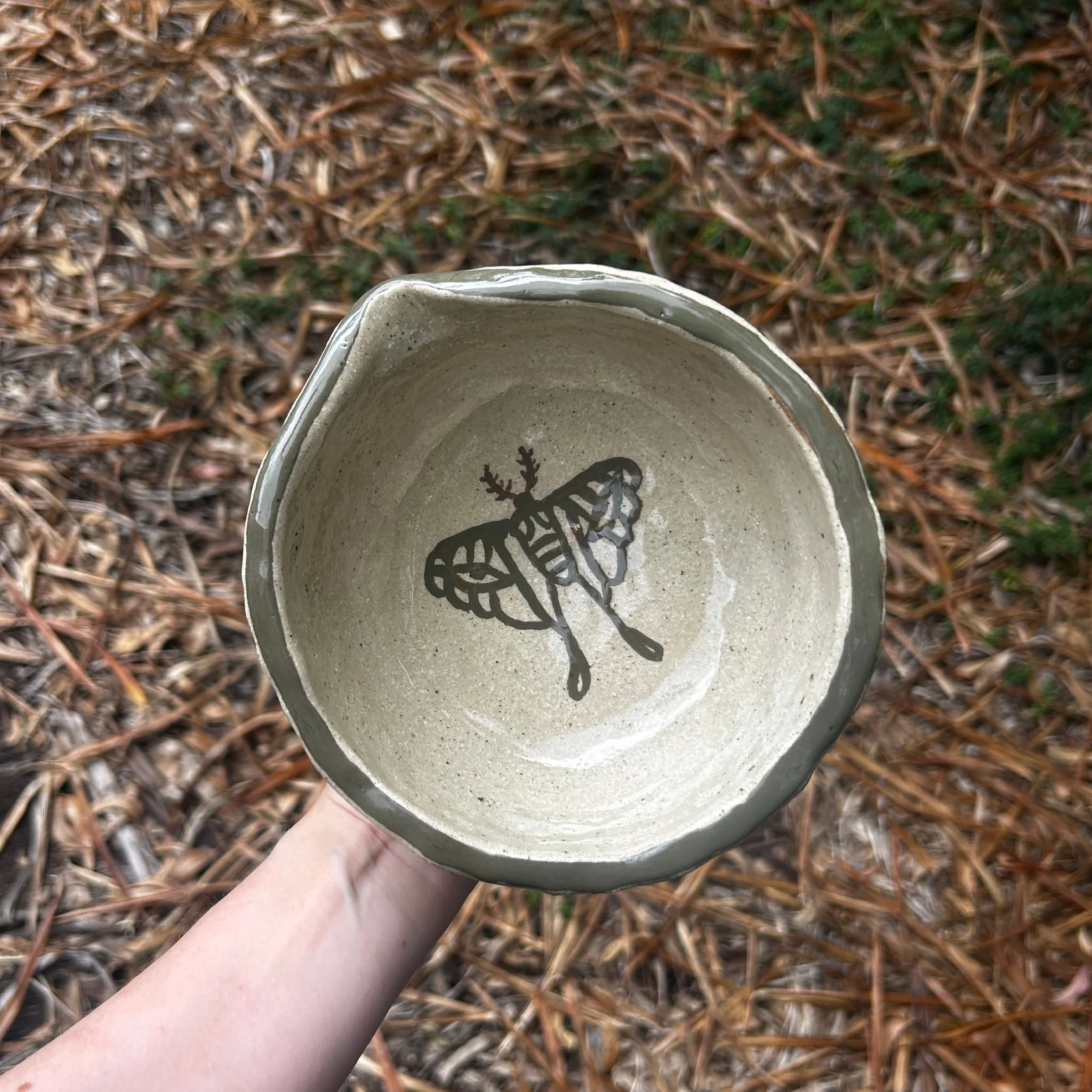 I chose the ritual of my morning drink, a matcha and created a bowl specific to this function, a wide low bowl with a spout. To make the piece truly mine I added a lunar moth to the base, which represent new beginnings to remind myself that everyday can be a fresh start.